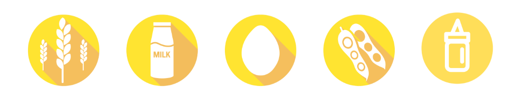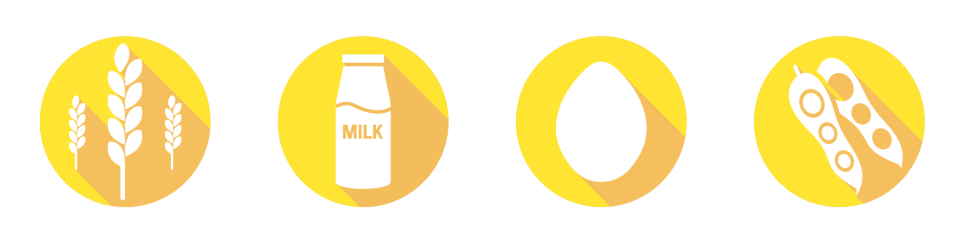 Bizcocho: Huevos, azúcar, harina de trigo (gluten), aceite de girasol, nata, yogurt, gasificantes (disfosfato disódico E 450 (i), bicarbonato de sodio E 500 (ii), harina de arroz), colorantes (E422, aceite de canola, E129, Emulsionante, E322), vainilla. Puede contener: trazas de frutos secos.